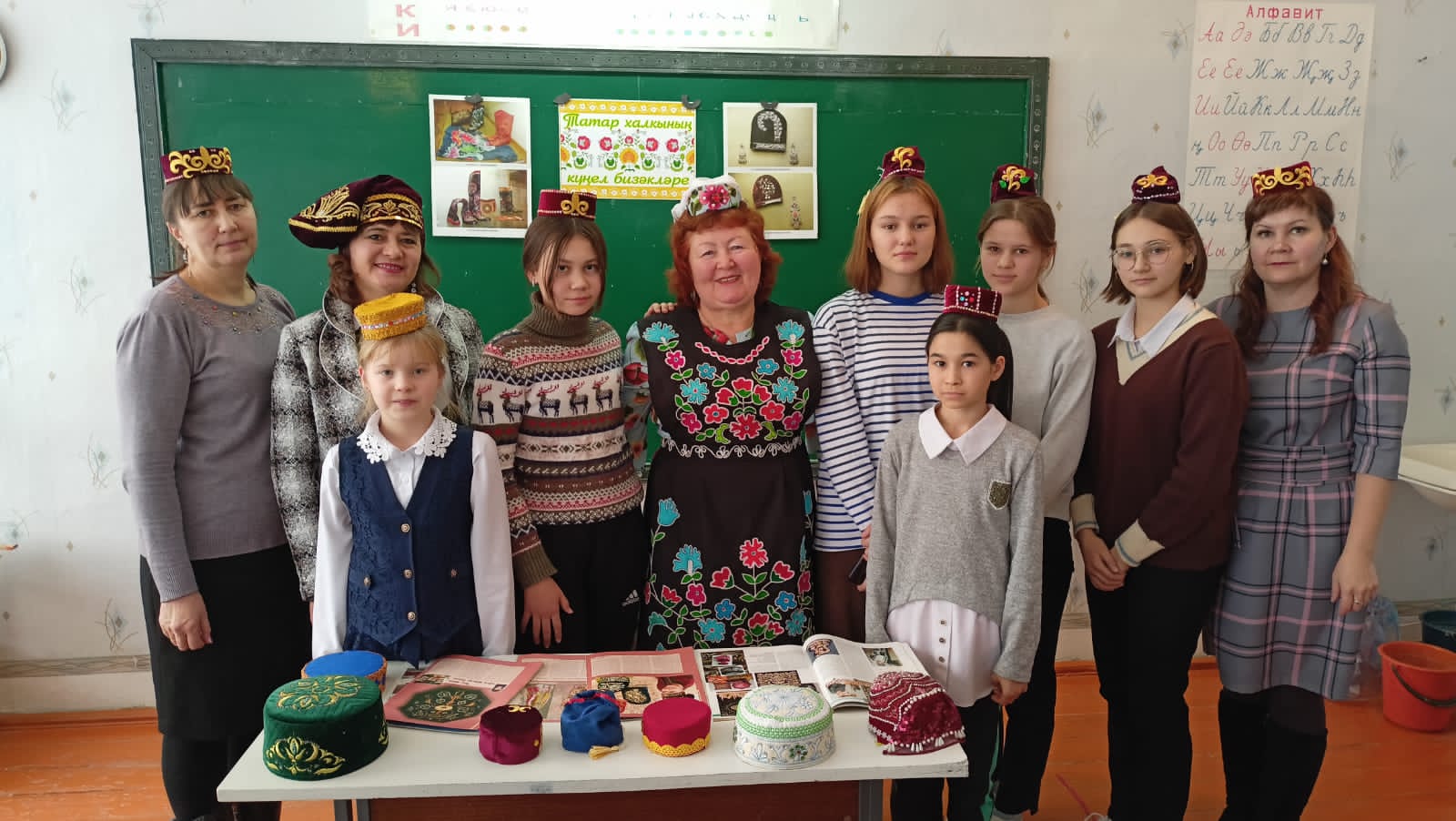 Зиляра Яхиевна рассказала учащимся об истории возникновения и технологии изготовления национального татарского головного убора.