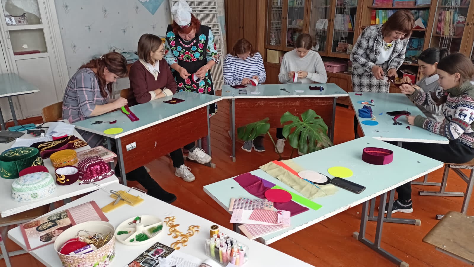 В МОБУ СОШ с. Качеганово Сулейманова Ф.Р. и Губайдуллина З.Я. провели для девушек по Пушкинской карте мастер-класс по шитью женского национального головного убора «Калфак».
